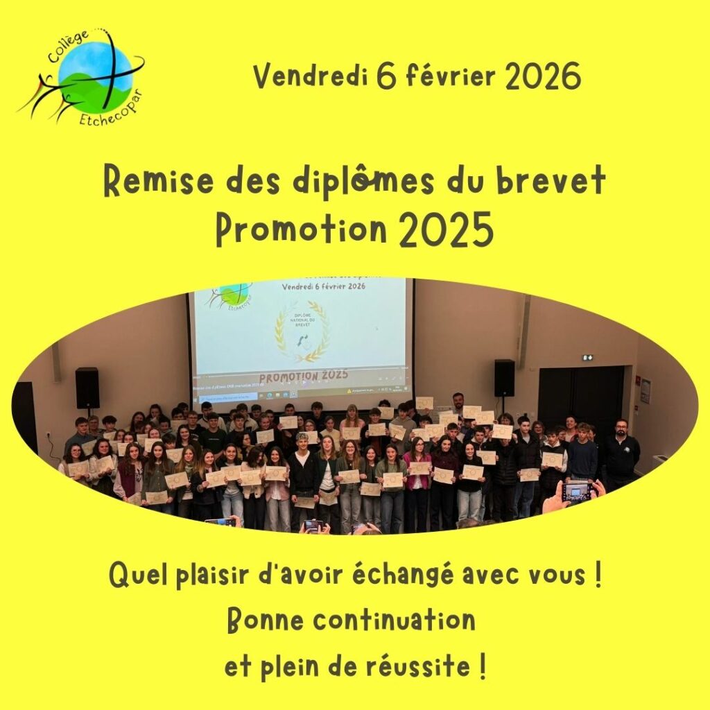 Vendredi 6 février : Cérémonie de remise des diplômes du brevet