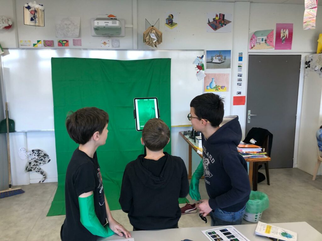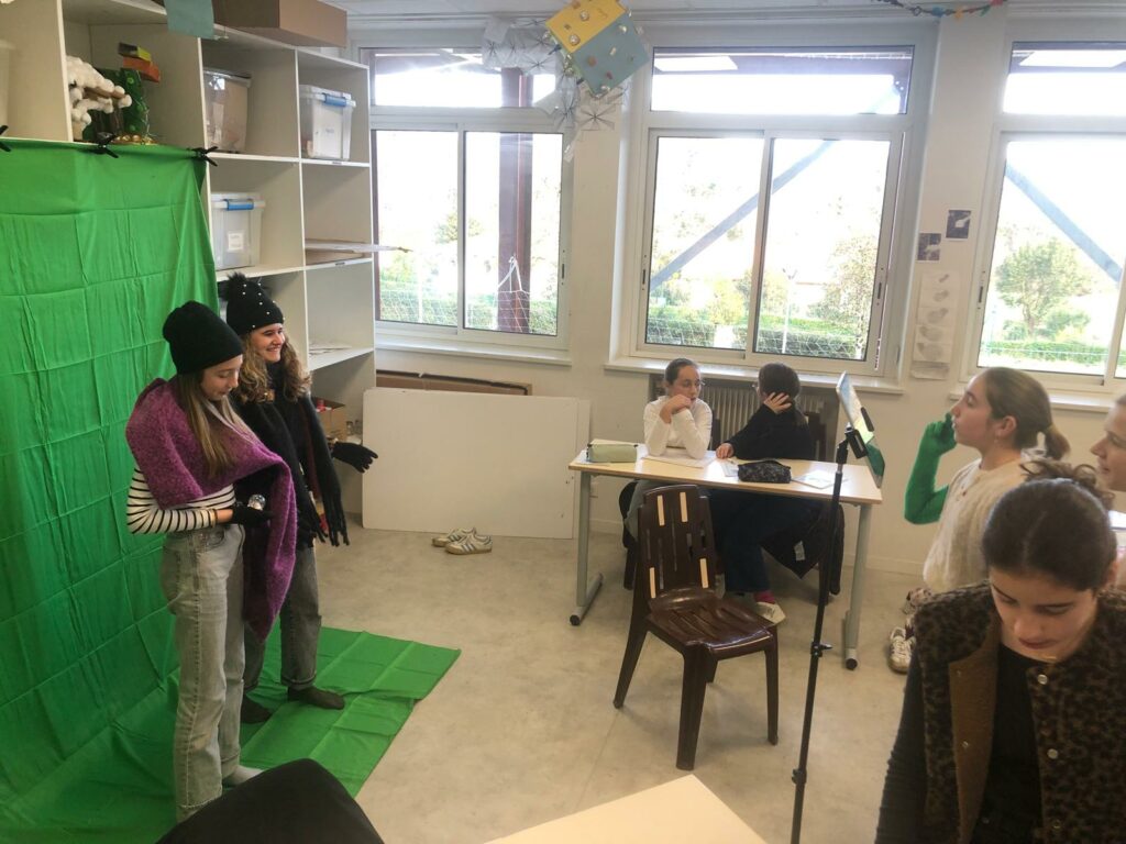 Dans le cadre des ateliers du mardi au collège, les élèves de 5? ont entamé un atelier d’arts plastiques autour du fond vert et des trucages numériques. À partir de prises de vue vidéo, ils découvrent comment intégrer des décors et créer des effets visuels grâce aux techniques de montage.